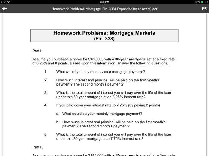 Solved Ipad 7 23 Pm Homework Problems Mortgage Fin 338