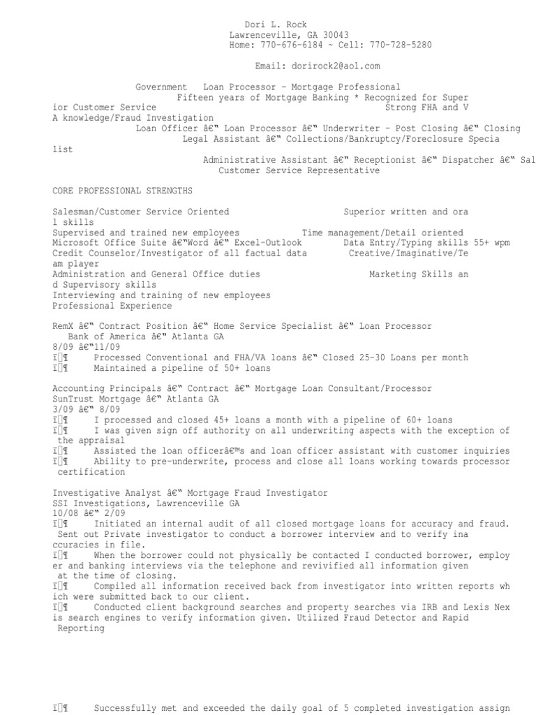 Gov Loan Proc Fraud Invest 17 Yrs Exp Mortgage Mortgage