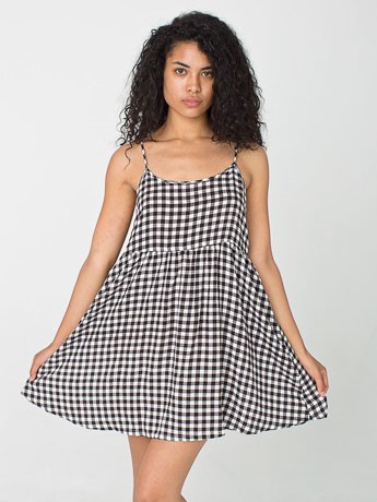 Gingham Print Rayon Challis Spaghetti Strap Babydoll Dress American Apparel