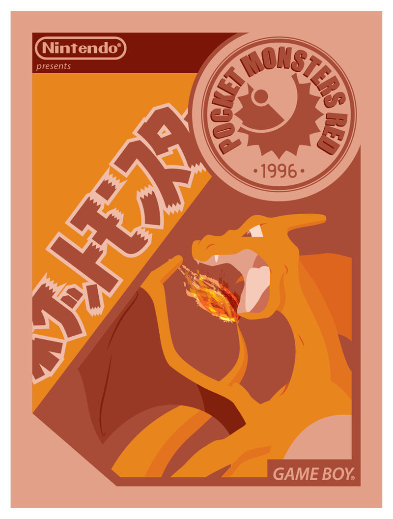 Minimalist Pocket Monsters Red Version Print Retro Video Games 90s Game Boy Graphic Design Kawaii Charizard Nostalgia Pokemon