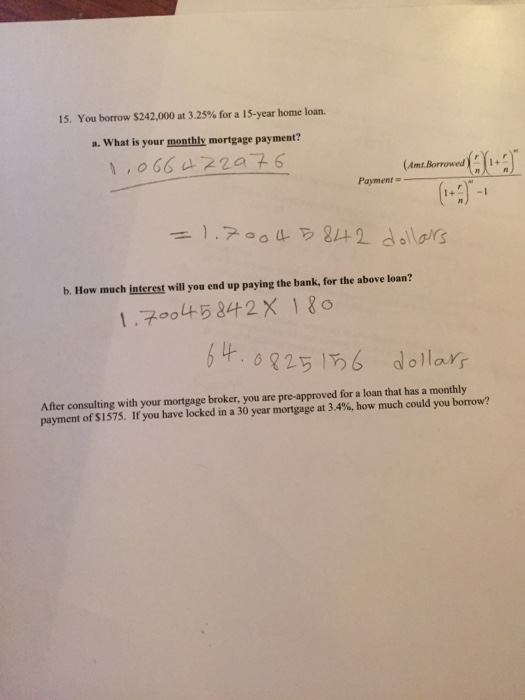Solved 15 You Borrow S242 000 At 3 25 For A 15 Year Hom
