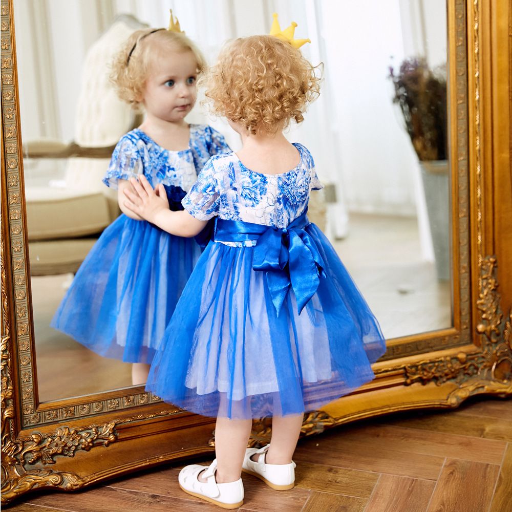 2019 Cute Princess Baby Girls Tulle Floral Lace Party Dress Blue Color Embroidered Summer Holiday Birthday Dresses From Smartmart 54 43 Dhgate Com