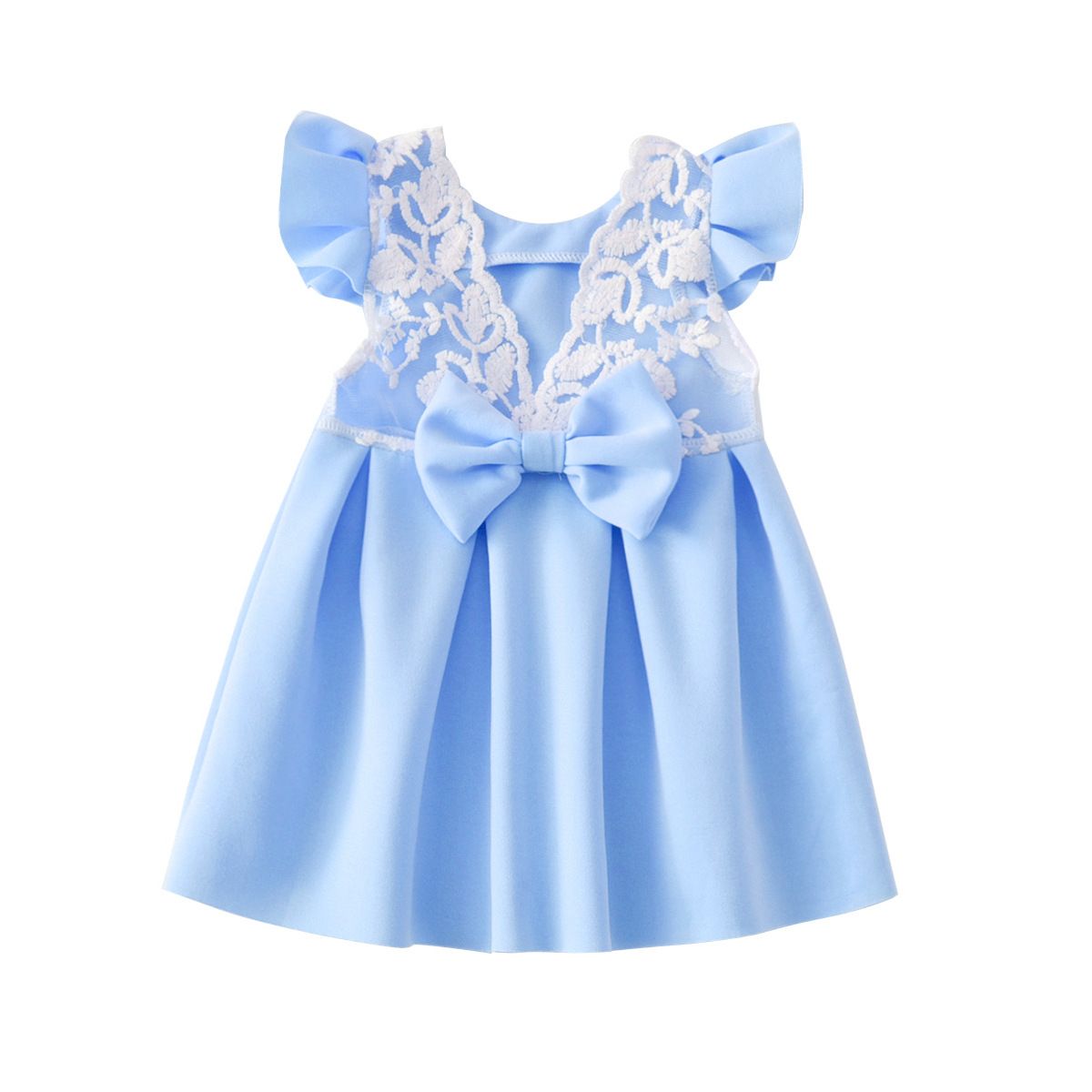 2019 Pink Blue Color Baby Lace Butterfly Backless Princess Skirt With Big Bow Kids Party Prom Dress Infant Toddler Baby Girl Summer Dress Clothes From